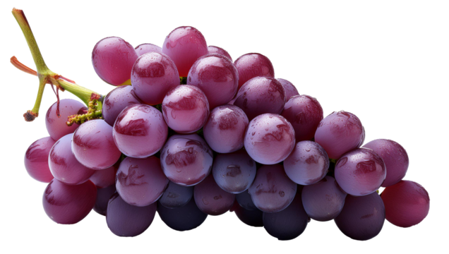 A cluster of juicy red grapes, each grape sharply focused, transparent background, PNG Cutout