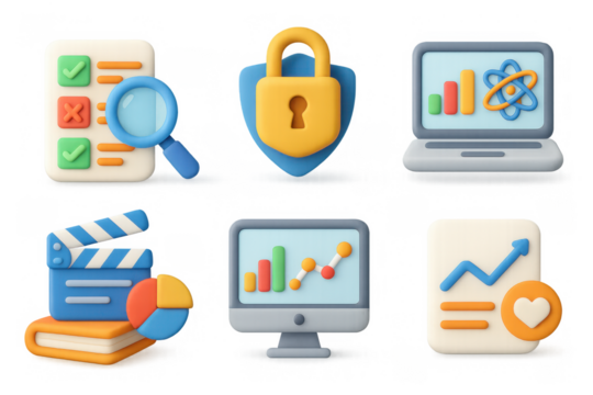 3d illustration of a business dashboard featuring bar chart, line graph, and donut chart for data analysis and reporting isolated on transparent background