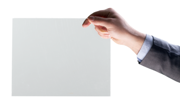 Businessman hand holds virtual panel