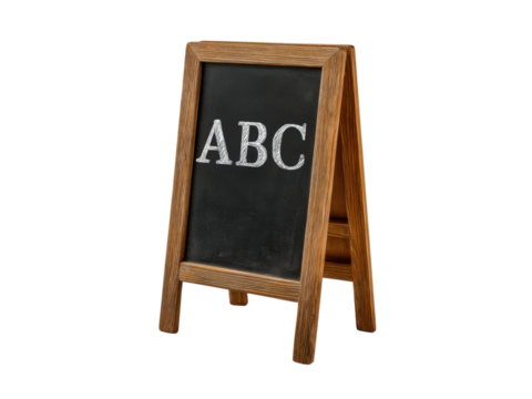 Wooden easel chalkboard with white chalk letters A B C image, Isolated, Png Transparent Background