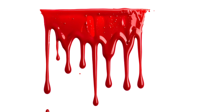 A graphic depiction of vivid red liquid dripping downwards against a stark black background