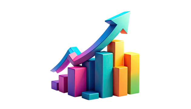 3d icon of green arrow pointing upwards with stock chart isolated on transparent background, representing business growth and success