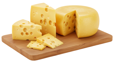 Isolated Assortment of Swiss Cheese on Wooden Board