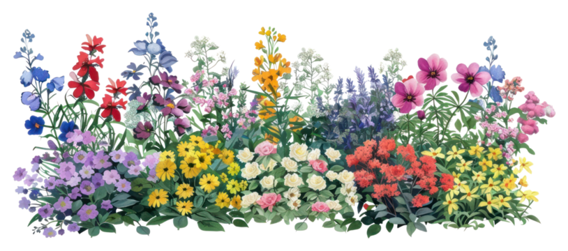 Lavender flowers blooming in a garden with transparent background