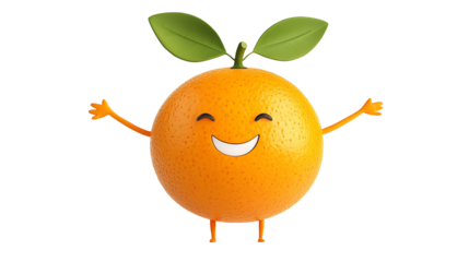 Happy smiling orange cartoon character isolated on transparent background