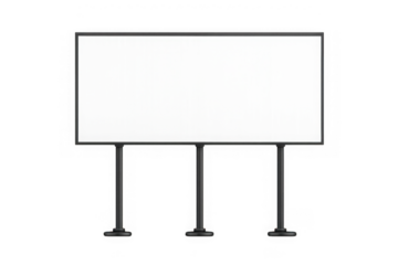 Empty projection screen on tripod stands ready for presentation or display isolated on transparent background