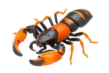 Isolated robotic scorpion toy black and orange insect model for kids science fiction toy insect robot art in transparent background