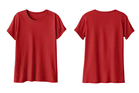 Blank red t shirt front and back mockup, plain cotton tshirt mock up design template. T shirt design template, tee shirt isolated on white transparent background.