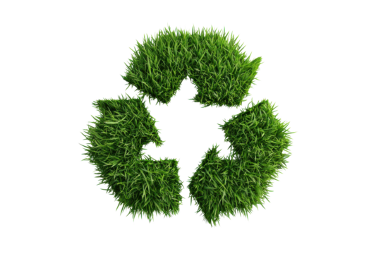 Green grass recycle symbol with a natural organic texture isolated on transparent background