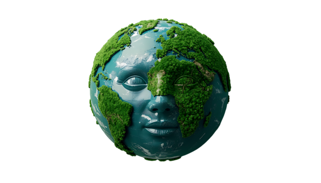 Grass continents on transparent background symbolizing global ecology