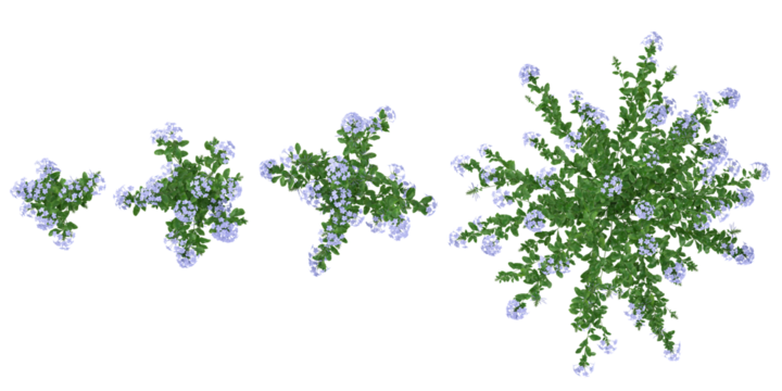 set of Plumbago flower plants on transparent background from the top view