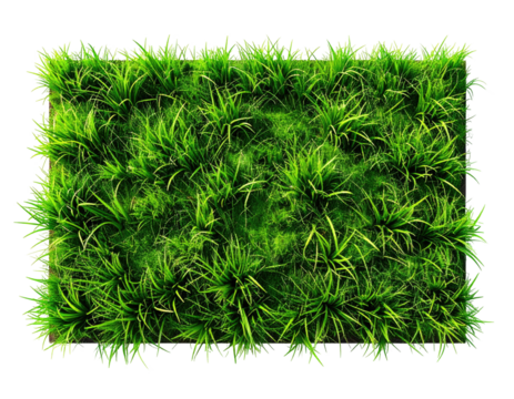 Lush, vibrant green grass patch, rectangle shape, top-down view, isolated