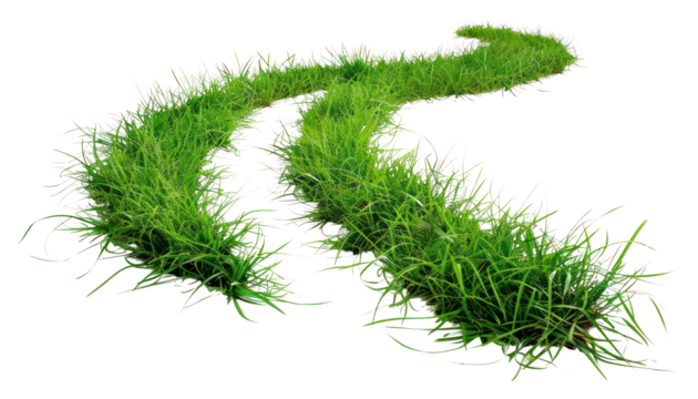 A long, vibrant strip of green grass with visible roots and rich soil, isolated as a cross-section on a transparent background. background removed