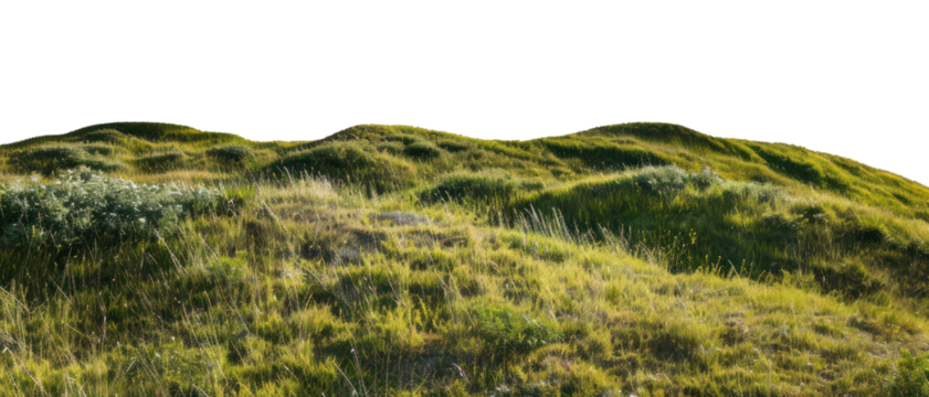 Hills with grass on a transparent background. 3D rendering