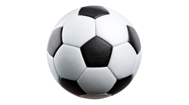 Close-up Texture of a Classic Black and White Soccer Ball, cut out transparent