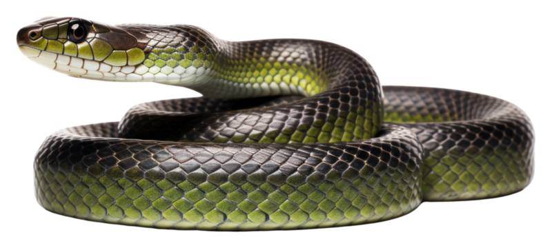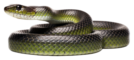 Coiled King Cobra with Raised Hood and Sharp Focus, Isolated on Transparent Background