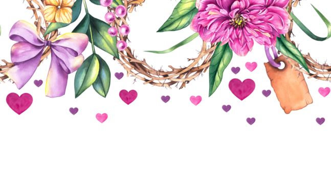 Watercolor Valentine's Day hand drawn horizontal seamless pattern. Valentine's Day pattern for packaging, textile, berddesign etc. Festive pattern for loversWatercolor Valentine's Day hand drawn horiz