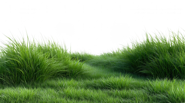 Lush green grass forms soft, rolling hills, creating a serene grassland landscape set against a pure white background. This isolated setting highlights nature's tranquility and simplicity