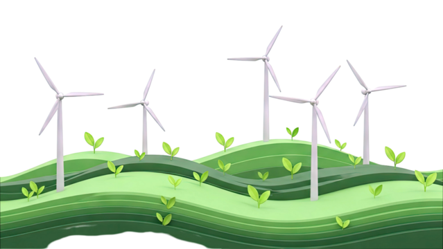 Wind Turbines on Rolling Green Hills with Sprouts