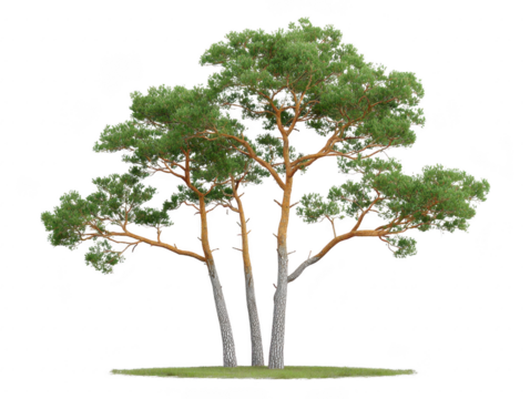 Tall pine tree with green needle foliage and textured brown bark, standing on grassy ground, evokes peaceful natural forest atmosphere, perfect for landscape design