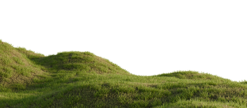 Green grass covering rolling hills on transparent background