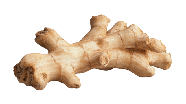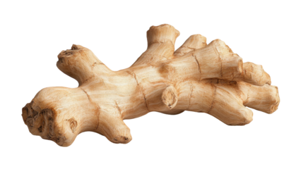 A fresh ginger root with unique shape and texture, perfect for culinary uses. transparent background