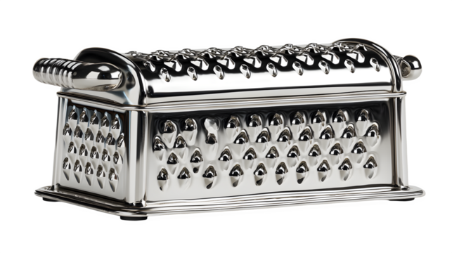 Chrome cheese grater with handle isolated on transparent background