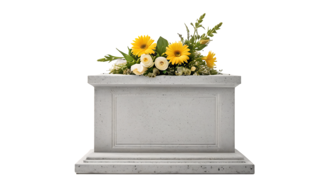 Elegant Stone Memorial with Yellow and White Flowers