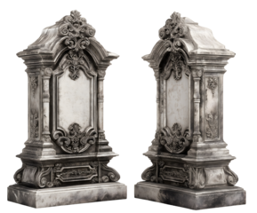 old memorial grave stone sign plate marble stone frame isolated on white transparent background, cut out