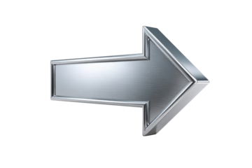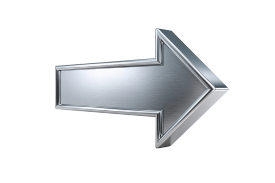 Brushed metal arrow pointing right on black background 3d render silver grey