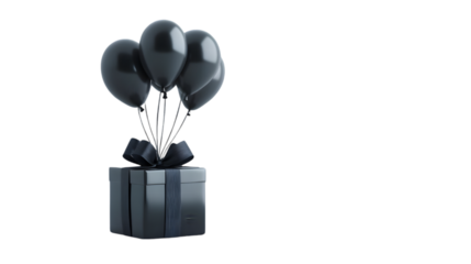 Elegant Gray Gift Box with Balloons: Perfect Birthday Image