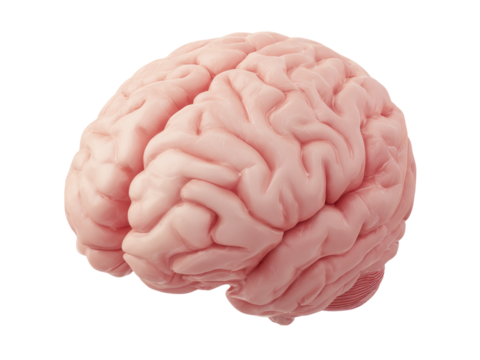 Human brain organ representing mind, intelligence, thinking, memory, and cognitive function on transparent background