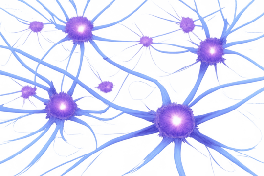 Neurons firing, communicating in a complex neural network, brain activity and cognitive function simulation, transparent background