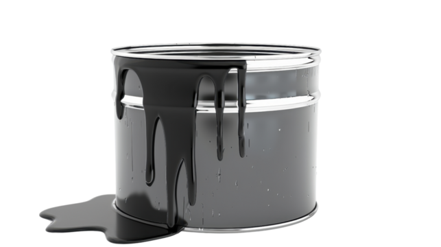 Trash can, Dark gray metal with open lid and vertical ribbed texture, isolated on white or transparent background. PNG