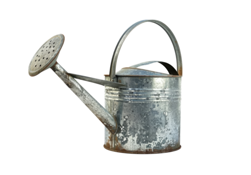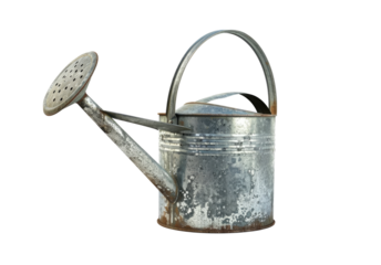 Old metal watering can, a classic design. Isolated on transparent background