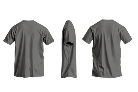A plain gray t-shirt with a transparent background that you can use for various design or promotional purposes.