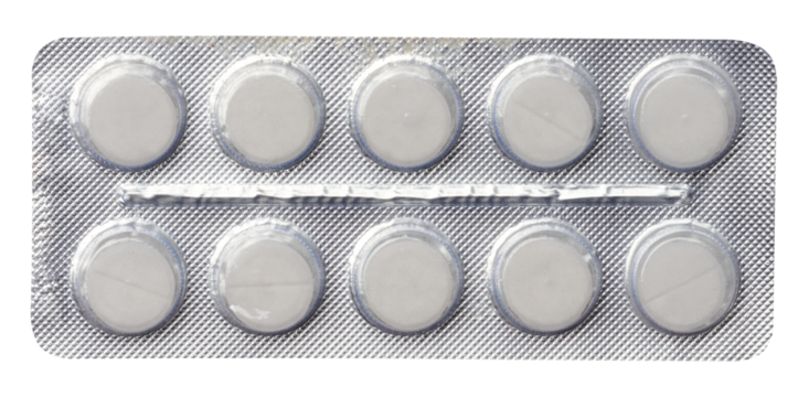 Blister pack with round pills on a white isolated background
