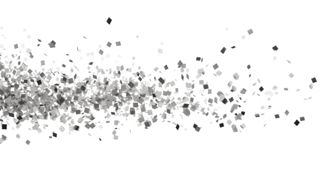 a dynamic arrangement of scattered squares in varying shades of black and gray against a white background creating a visually striking abstract pattern