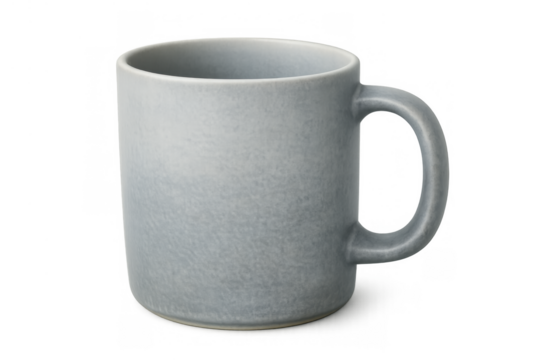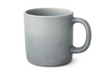 Gray ceramic coffee mug with handle isolated on a transparent background