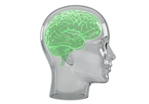 Transparent brain interface with technical diagrams for innovations