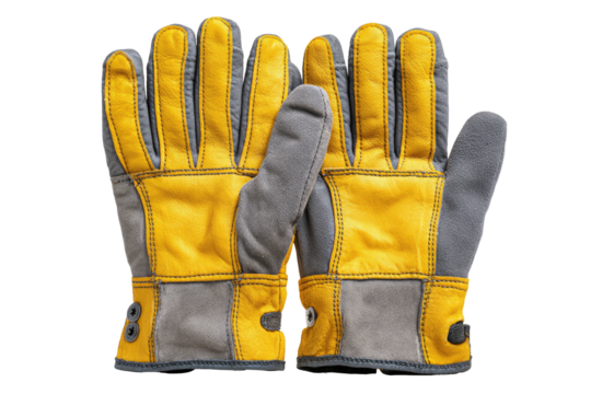 Pair of gray and blue work gloves isolated on transparent background, designed for protection and grip