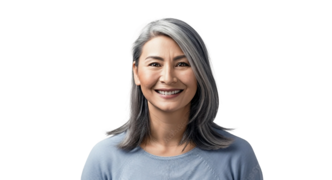 Smiling Mature Asian Woman Portrait | Close Up Headshot of Beautiful Woman with Gray Hair for Beauty, Health and Lifestyle Marketing