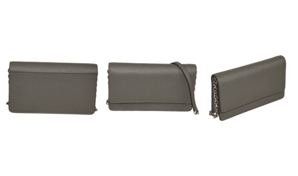 Three angles of a gray handbag isolated on transparent background for accessories