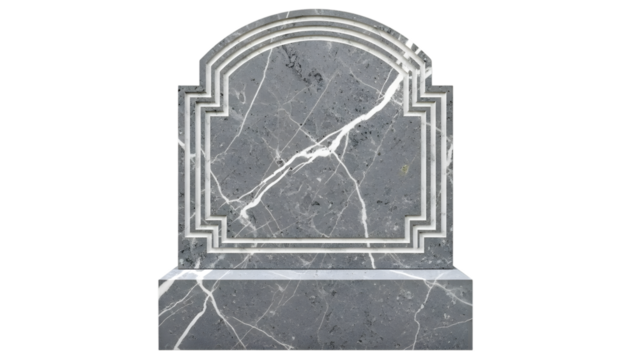 Gray marble headstone with intricate white border isolated on a transparent background tombstone gravestone