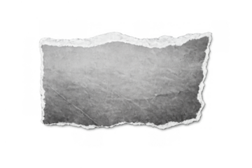 Grey gray torn curled paper or cardboard message backdrop with rough edges and blank copy space for text in the middle, png template on transparent background design element