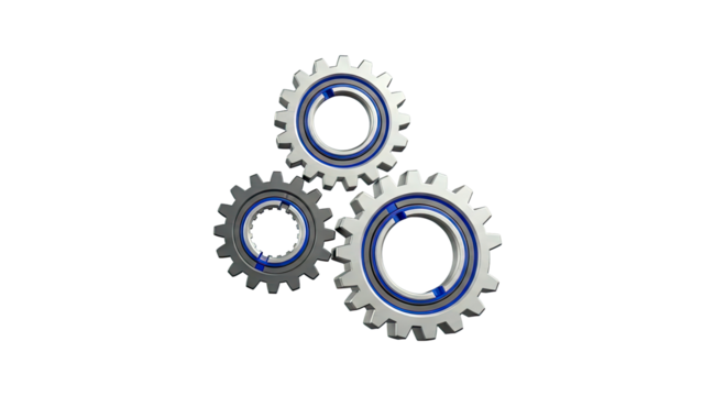 Three Interlocking Gears with Blue Accents