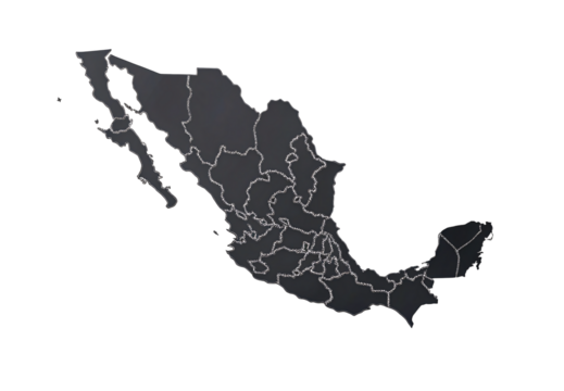 Mexico map with state borders outline in dark gray silhouette, isolated on a transparent background
