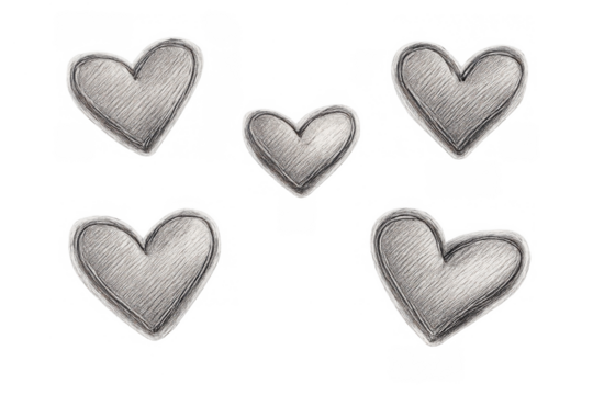 Hand-drawn hearts with rough texture, gray outline, celebrating love, romance, and valentine's day on transparent background