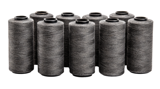 Four crumpled pieces of shiny, light gray plastic wrap, isolated on black