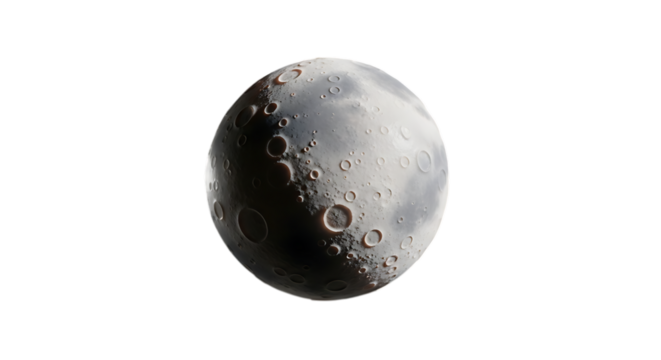 Detailed view of the moons surface with craters and shadows, isolated on transparent background